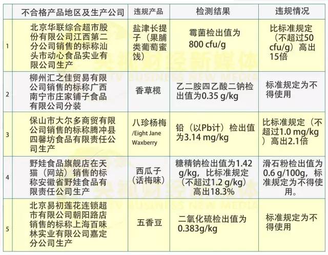 食藥監(jiān)局:這些食品不合格!天貓、華聯(lián)均有售