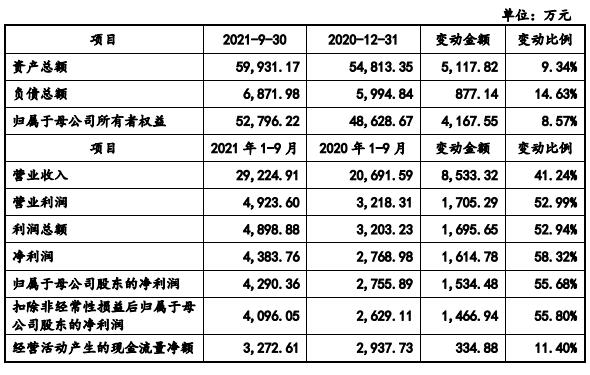2021年1-9月,家鴻口腔實(shí)現(xiàn)營(yíng)業(yè)收入2.92億元,同比增長(zhǎng)41.24%;歸屬于母公司股東的凈利潤(rùn)4290.36萬(wàn)元,同比增長(zhǎng)55.68%;扣除非經(jīng)常性損益后歸屬于母公司股東的凈利潤(rùn)4096.05萬(wàn)元,同比增長(zhǎng)55.80%;經(jīng)營(yíng)活動(dòng)產(chǎn)生的現(xiàn)金流量?jī)纛~3272.61萬(wàn)元,同比增長(zhǎng)11.40%。