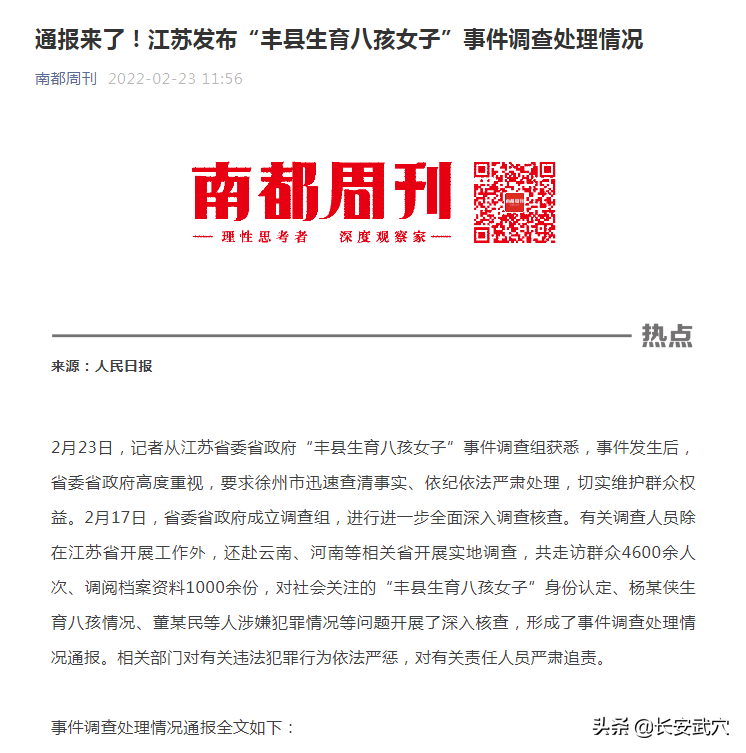2月23日,江蘇發(fā)布《關(guān)于“豐縣生育八孩女子”事件調(diào)查處理情況的通報(bào)》。