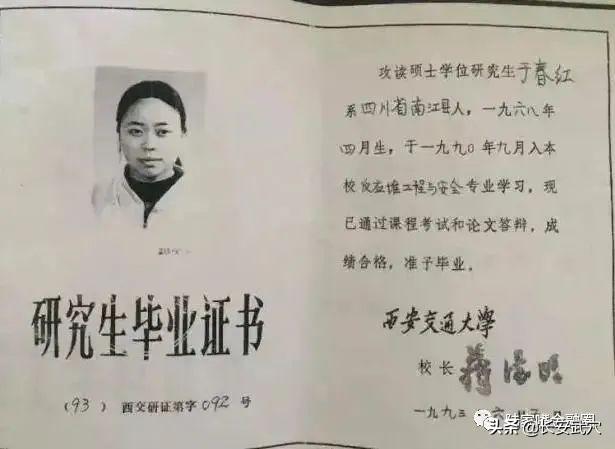 1993年,25歲的四川南江縣姑娘于春紅,考取了西安交通大學(xué)熱能工程專(zhuān)業(yè)博士研究生。