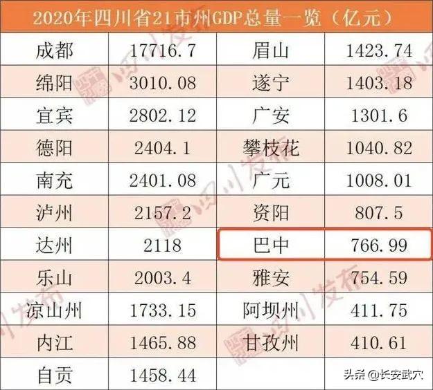 而位于四川的巴中市,2020年GDP在全省21個(gè)州市排名倒數(shù)第四。GDP僅766億元。不抵東部一個(gè)縣。