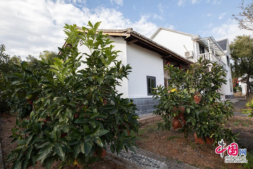 在蘇家塘,空地荒地被利用起來,栽種了馬家柚、桃樹等各類果樹 1100 株,收入用于濟(jì)貧解困、日常管護(hù)和公益事業(yè)。圖為村民房屋前種植的馬家柚。中國網(wǎng)記者倫曉璇攝