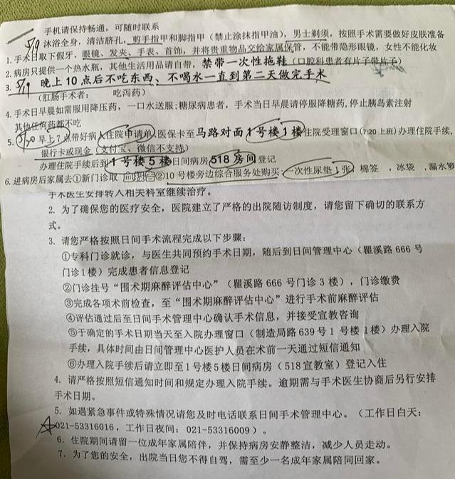 手術(shù)時(shí)間確認(rèn)后,王醫(yī)生給我開(kāi)了一張住院申請(qǐng)單,送到1樓日間手術(shù)管理中心,然后前往3樓收費(fèi)掛號(hào)麻醉評(píng)估,具體流程和檢查事項(xiàng)可以查看下面圖片信息: