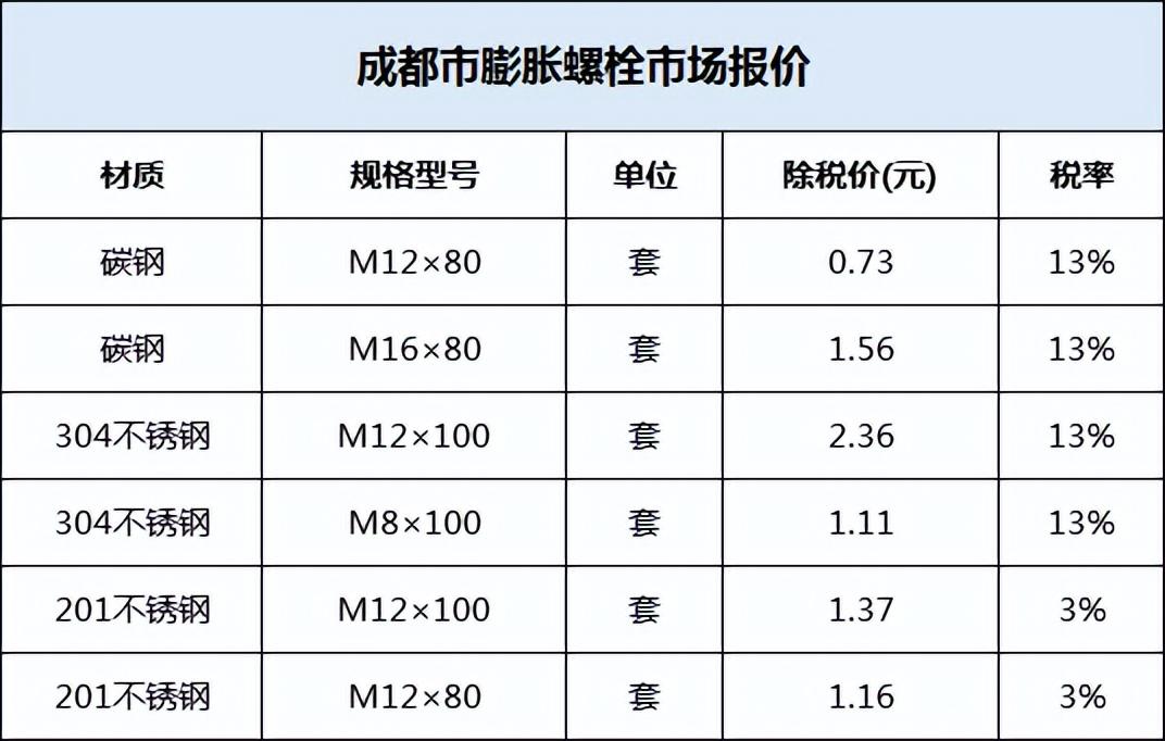膨脹螺栓市場價格