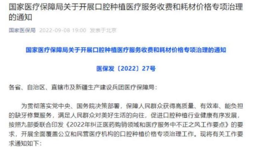 醫(yī)保局關(guān)于種植牙價(jià)格的調(diào)控結(jié)果終于出來(lái)了。種植牙的價(jià)格主要分三個(gè)部分,第一個(gè)就是種植牙的醫(yī)療服務(wù),第二個(gè)是口腔種植體,第三個(gè)是牙冠。