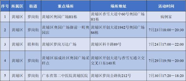 附表:黃埔區(qū)涉疫場所一覽表